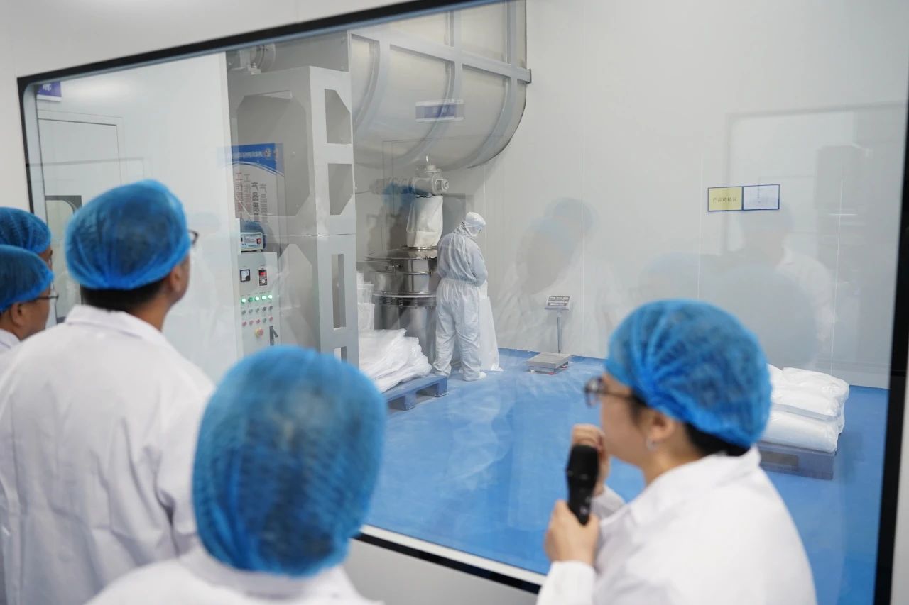 嘉賓們首先來到鎂神科技食品氧化鎂二期車間,這是此次項目的核心區(qū)域。車間內(nèi)的全自動四列雙層電加熱輥道窯生產(chǎn)線,是國內(nèi)首條結(jié)合動靜生產(chǎn)的高效生產(chǎn)線,具備精準(zhǔn)的溫控系統(tǒng),溫度誤差控制在±2℃以內(nèi),有效保證了產(chǎn)品的高穩(wěn)定性和潔凈度?,F(xiàn)場技術(shù)人員向嘉賓詳細(xì)介紹了生產(chǎn)線的先進(jìn)工藝和操作流程,展示了鎂神科技在食品級氧化鎂生產(chǎn)領(lǐng)域的技術(shù)創(chuàng)新與領(lǐng)先優(yōu)勢。接下來進(jìn)入潔凈區(qū)后,嘉賓們進(jìn)一步感受到鎂神科技在產(chǎn)品品質(zhì)保障方面的嚴(yán)謹(jǐn)態(tài)度。食品二期項目中面積達(dá)5000平方米的十萬級潔凈區(qū)達(dá)到了國際食品安全標(biāo)準(zhǔn),嚴(yán)格控制生產(chǎn)環(huán)境中的微生物和異物,確保產(chǎn)品的純凈度。通過高標(biāo)準(zhǔn)的生產(chǎn)環(huán)境,鎂神科技不僅滿足了國內(nèi)外客戶對食品安全的嚴(yán)格要求,還為開拓全球市場提供了堅實的質(zhì)量保障。